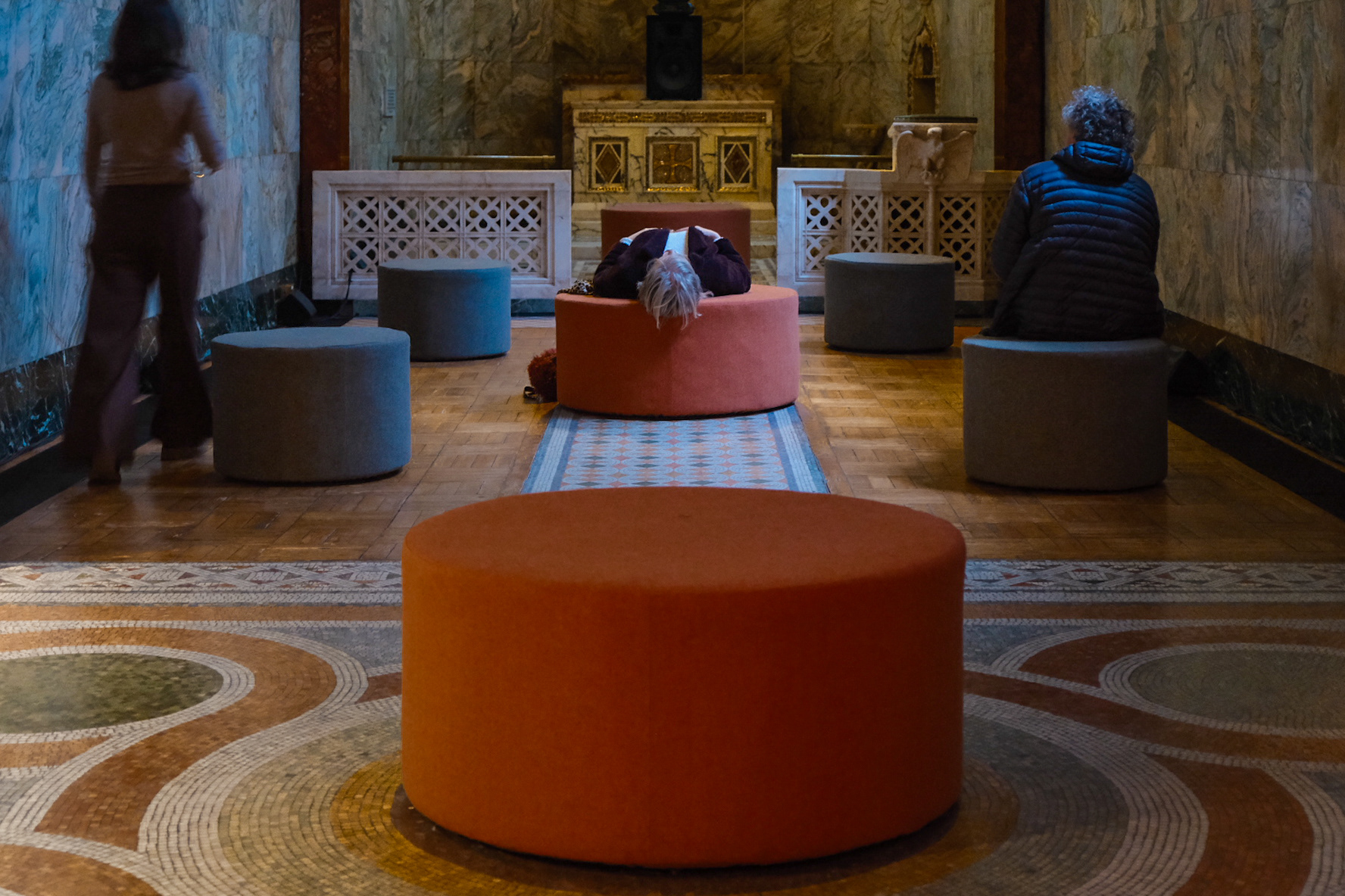 Originally created for an art exhibition featuring sound-based work, the stools invited visitors to sit or recline while immersing themselves in the layered experience of sound, light, and scent within the historic space. Following the exhibition, the chapel retained the stools for ongoing use.