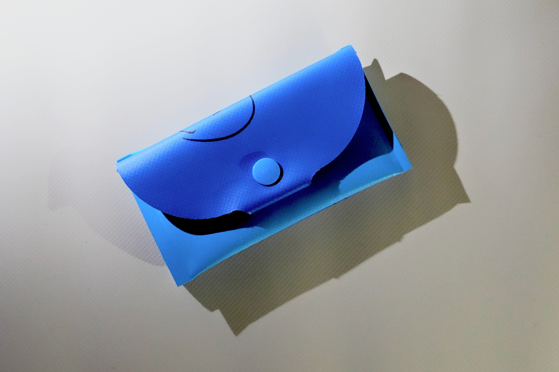 Wallets made from upcycled PVC fabric which used to be scraps from making outdoor tents.