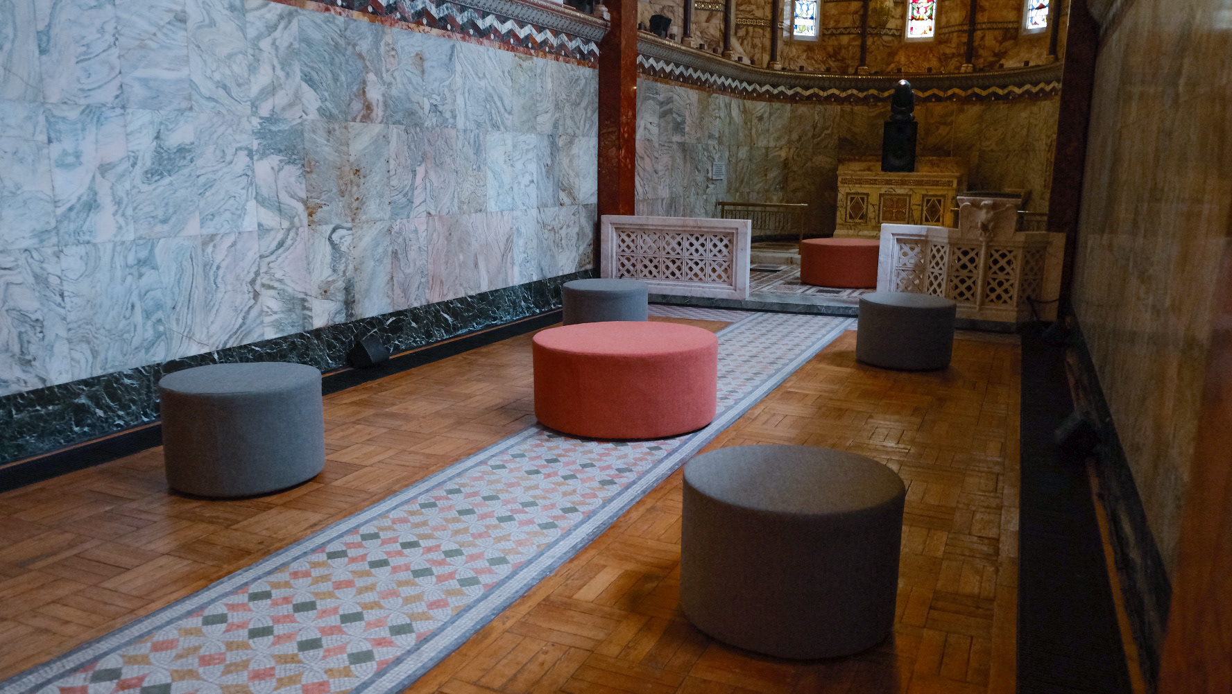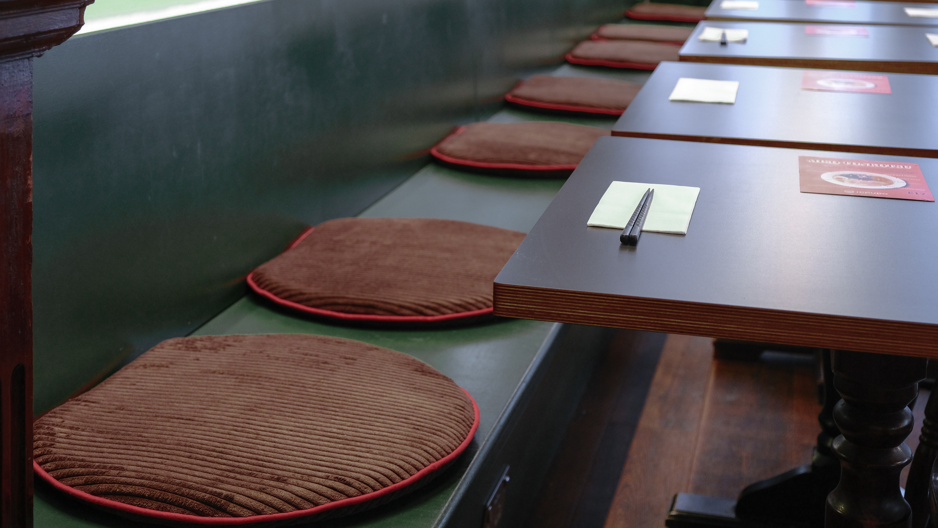 The eye-catching striped design captures the retro-pop atmosphere of the shop.